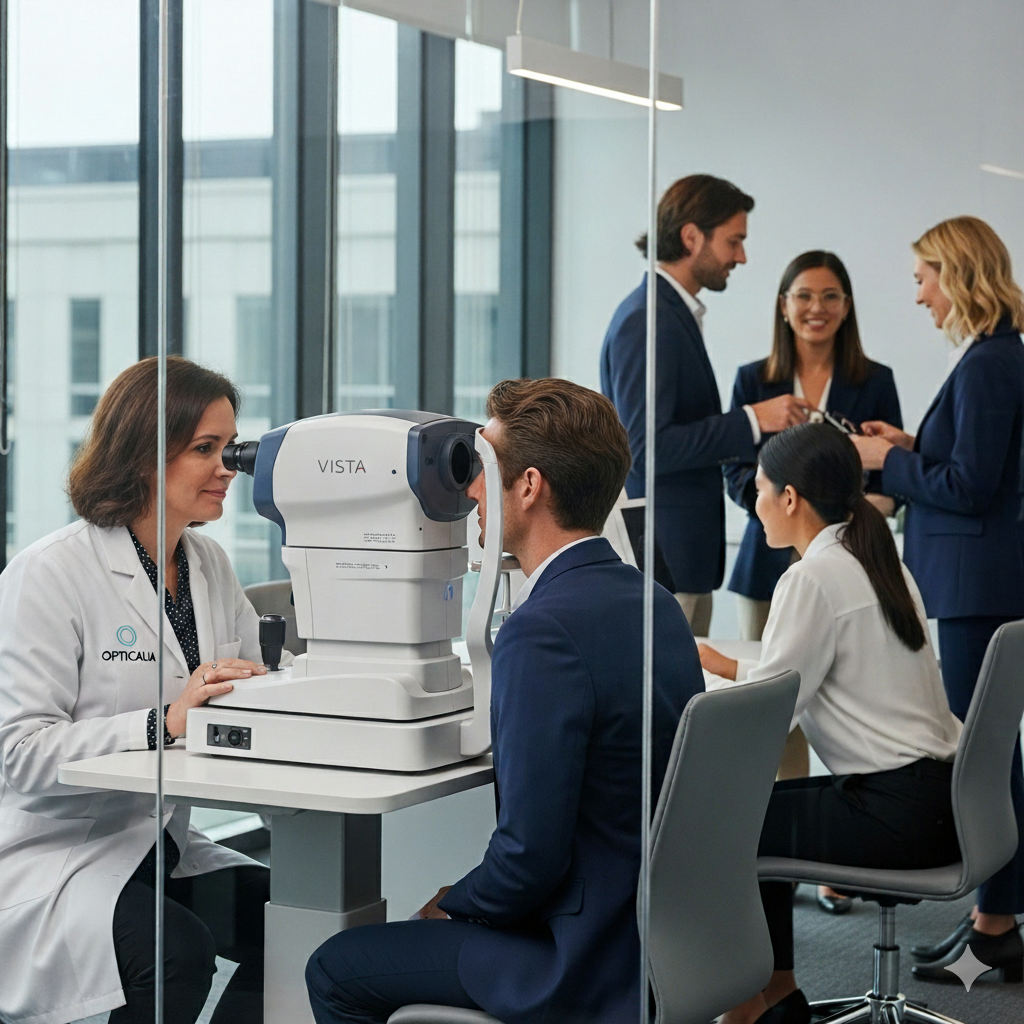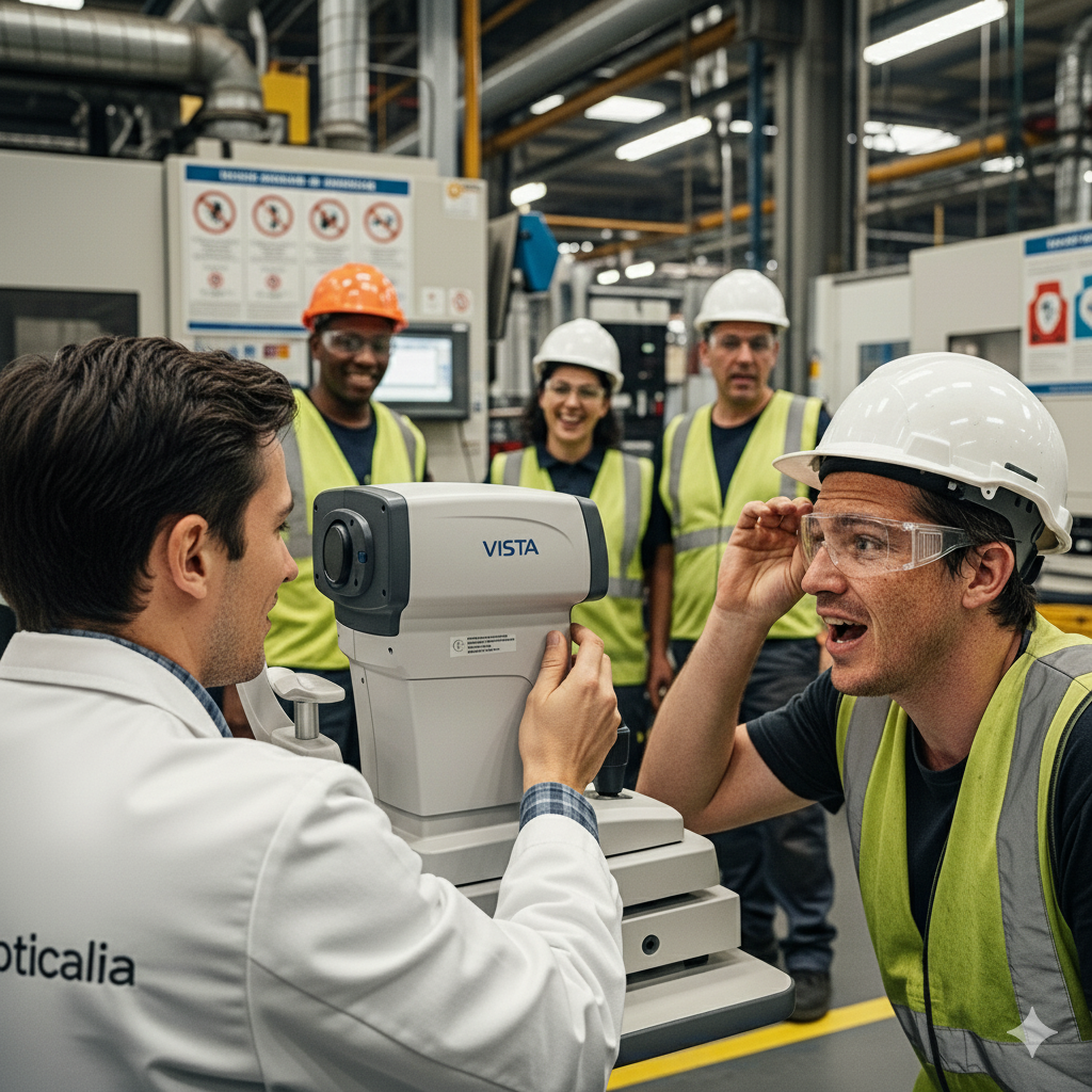 Seja no escritório ou no chão de fábrica, a Opticalia garante clareza, conforto e segurança.